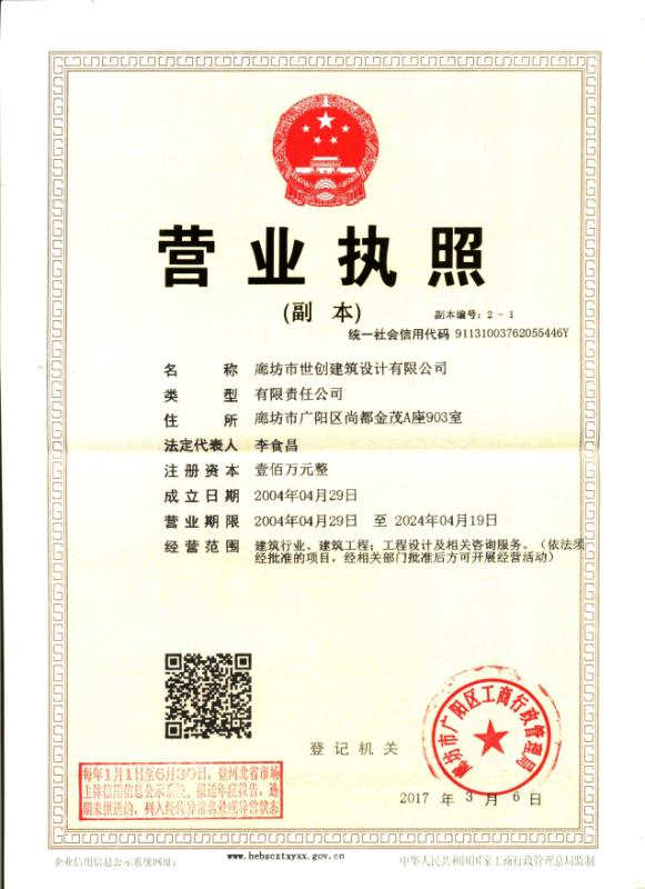 廊坊市世創(chuàng)建筑設(shè)計(jì)有限公司,原為廊坊市規(guī)劃設(shè)計(jì)院建筑工程設(shè)計(jì)所。成立于1997年,多年來(lái)本公司在社會(huì)各界人士的關(guān)心、支持下,不斷發(fā)展壯大。自2006年3月1日起具有國(guó)家建設(shè)部核準(zhǔn)的建筑工程乙級(jí)設(shè)計(jì)證書(shū),證書(shū)編號(hào)為:A213006026。企業(yè)法人營(yíng)業(yè)執(zhí)照,注冊(cè)號(hào):131003000011148 我公司自創(chuàng)建以來(lái)完成各類工業(yè)與民用建筑設(shè)計(jì)、咨詢項(xiàng)目共有三百五十多項(xiàng),建筑面積近三百萬(wàn)平方米,工程所在地涵蓋廊坊、天津、北京等地區(qū)。并有...